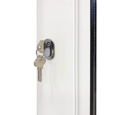 Primolux-glassektioner har vendbare skodder, hvor skoddens position bestemmes under installationen. Alle døre er skydedøre.